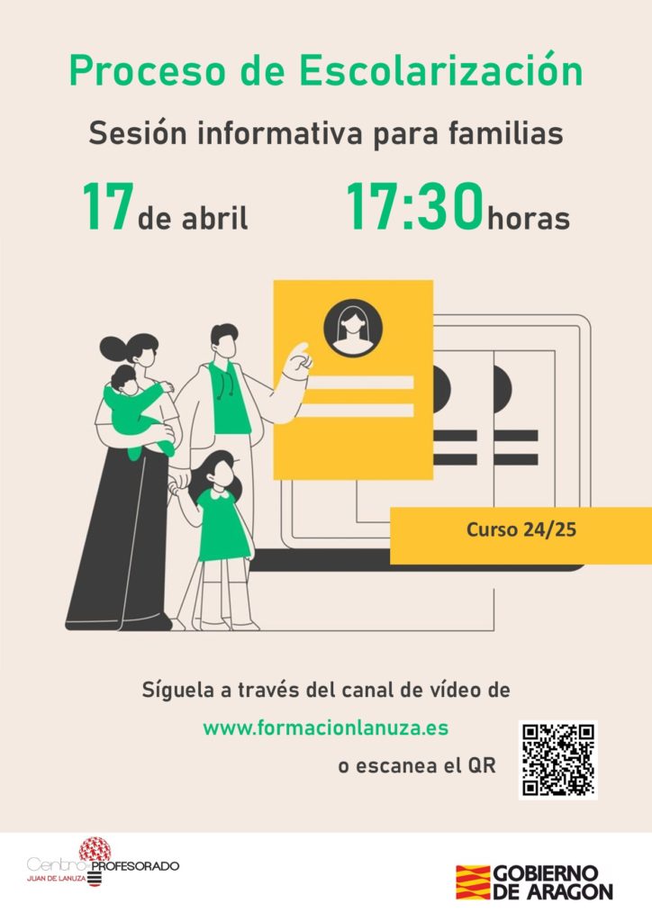 Desde la Dirección General de Planificación, Centros y Formación Profesional se va a realizar una charla informativa sobre el proceso de escolarización para las familias. Dicha charla se celebrará el día 17 de abril a las 17,30 horas en streaming y se podrá ver en el canal de youtube del CIFE Juan de Lanuza.