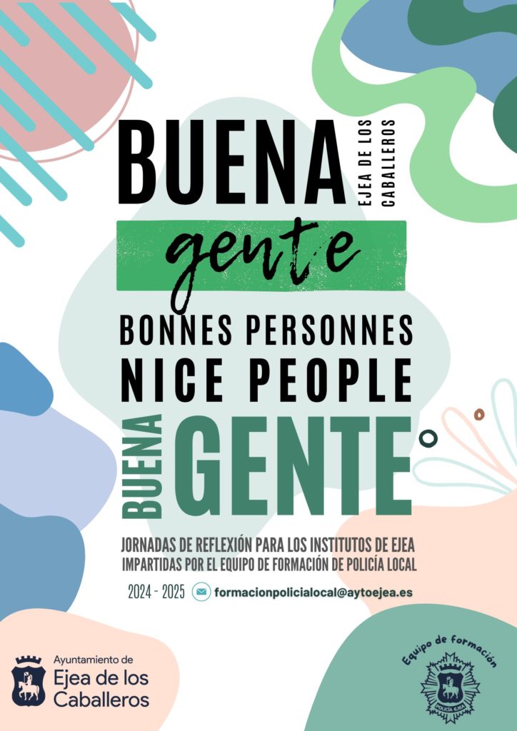 La semana que viene tendrá lugar el proyecto Buena Gente organizado por el Equipo de Educación de Policía Local. Por segundo año consecutivo, se realizarán diversas jornadas de reflexión con el alumnado de 1º ESO.