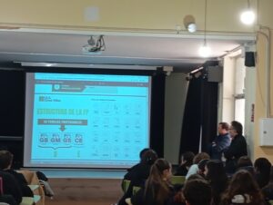 Hemos empezado con una charla a cargo de profesores de los ciclos formativos de grado superior del IES Cinco Villas en la que los alumnos y alumnas de 2° de bachillerato han podido conocer la estructura de la FP y las distintas opciones formativas de la zona.