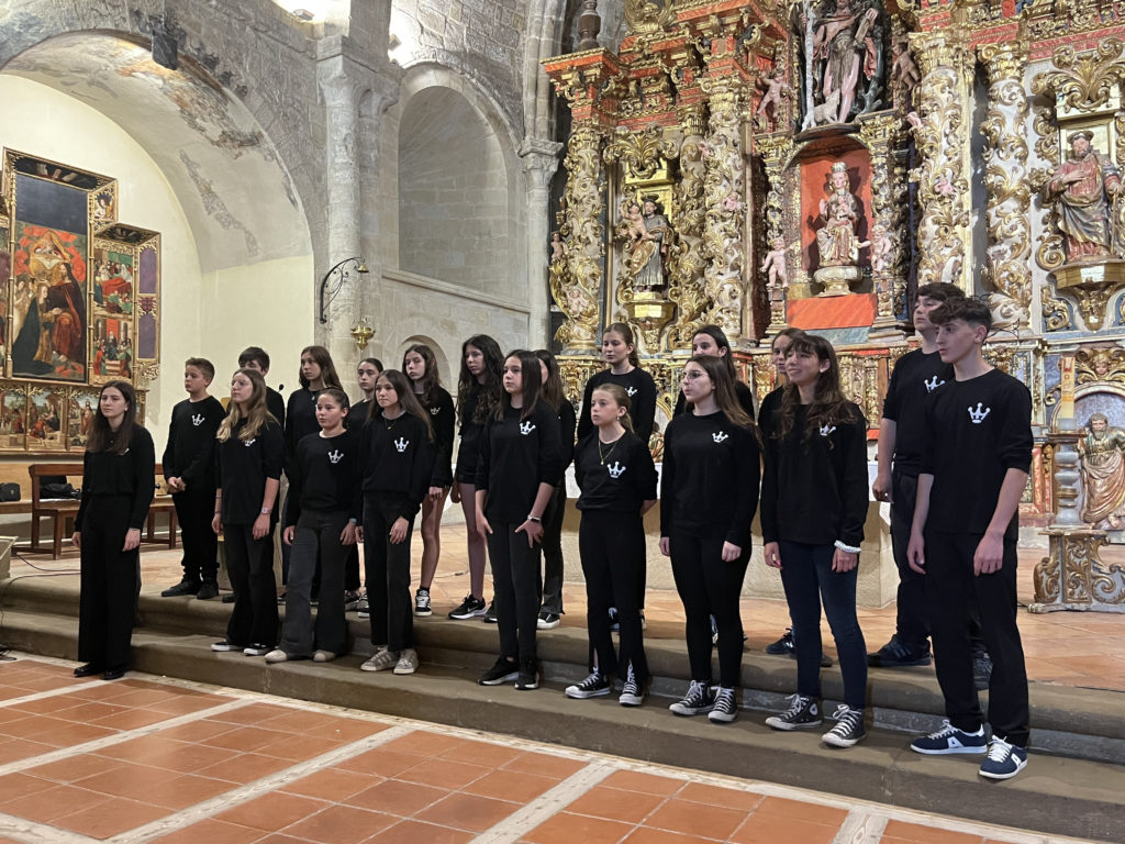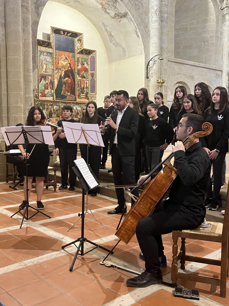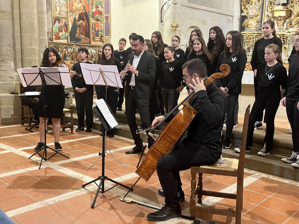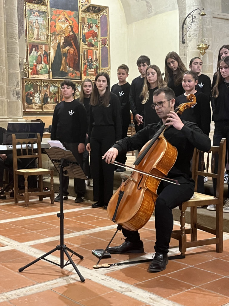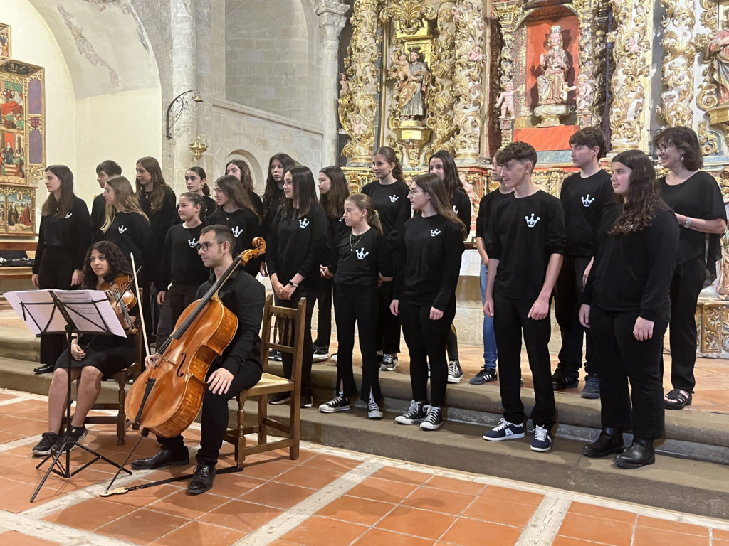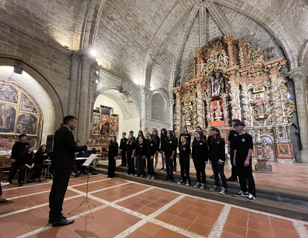 08/06/2025 La Iglesia de Santa María de la Corona ha acogido el último recital con el que el Coro del IES Reyes Católicos cierra el curso 24-25. Al repertorio de canto vocal interpretado por el alumnado integrante del coro y acompañado al piano por Pilar Aurensanz, se le ha sumado una actuación muy especial, la de los profesores del Dpto. de Música –Daniel Giménez, Pilar Gastou y Juan Manuel Fernández al clarinete, violín y chelo, respectivamente.