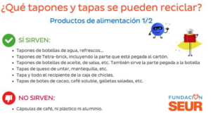 Los tapones recogidos se mandan a SEUR y con ellos se obtienen dos cosas: pellets que se utilizarán para fabricar nuevos productos de plástico y dinero que se destina a causas solidarias.