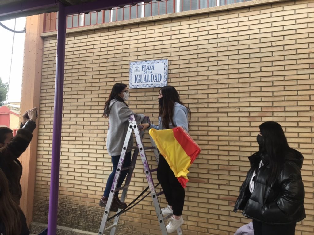 08/03/2022 El centro educativo IES Reyes Católicos de Ejea de los Caballeros ha dedicado un espacio dentro de sus instalaciones a la igualdad, inaugurando con motivo de los actos del día 8 de Marzo su “Plaza de la Igualdad”.