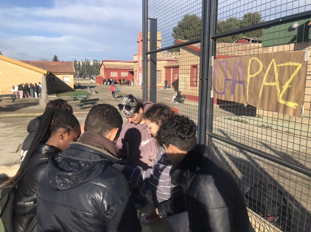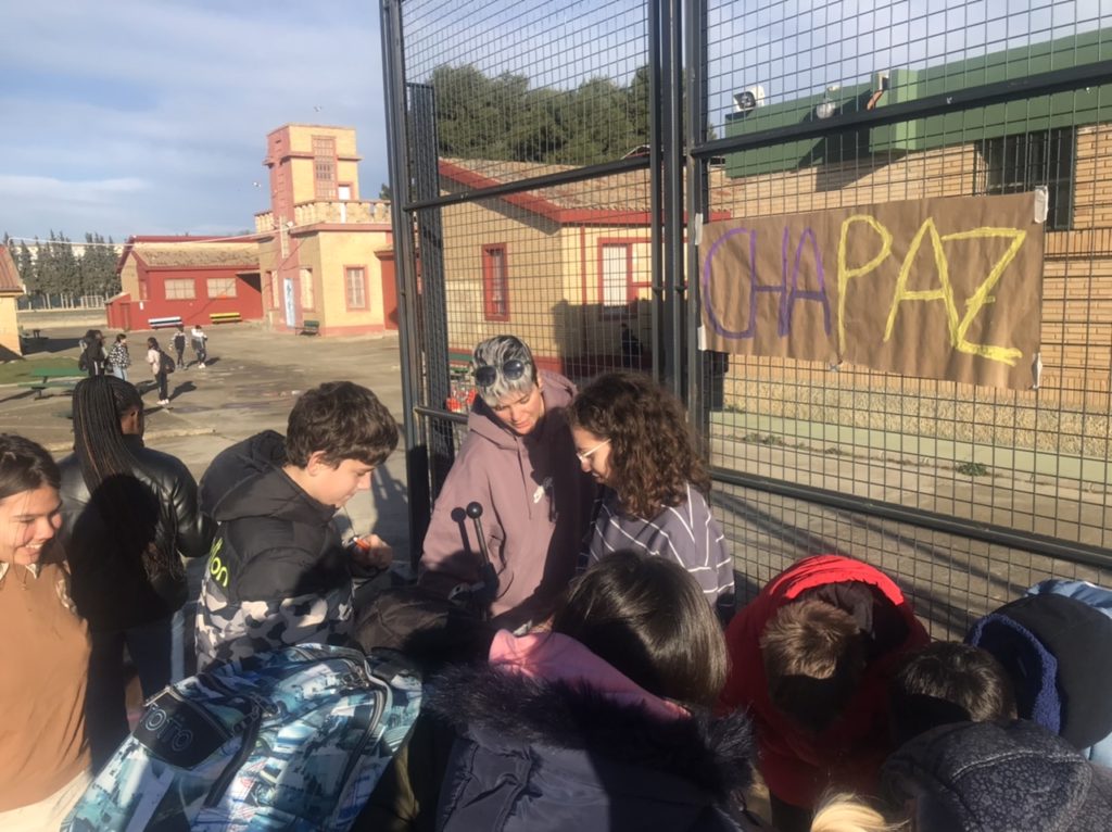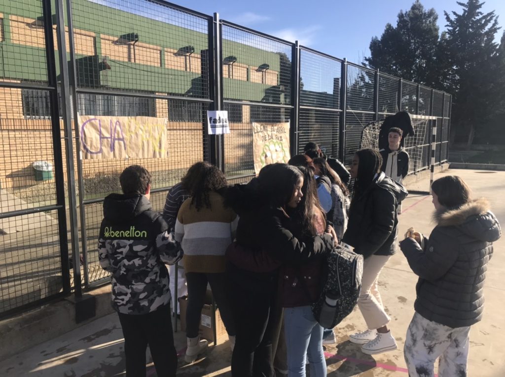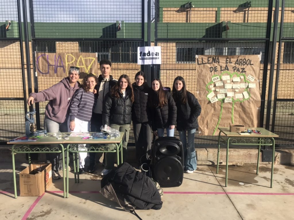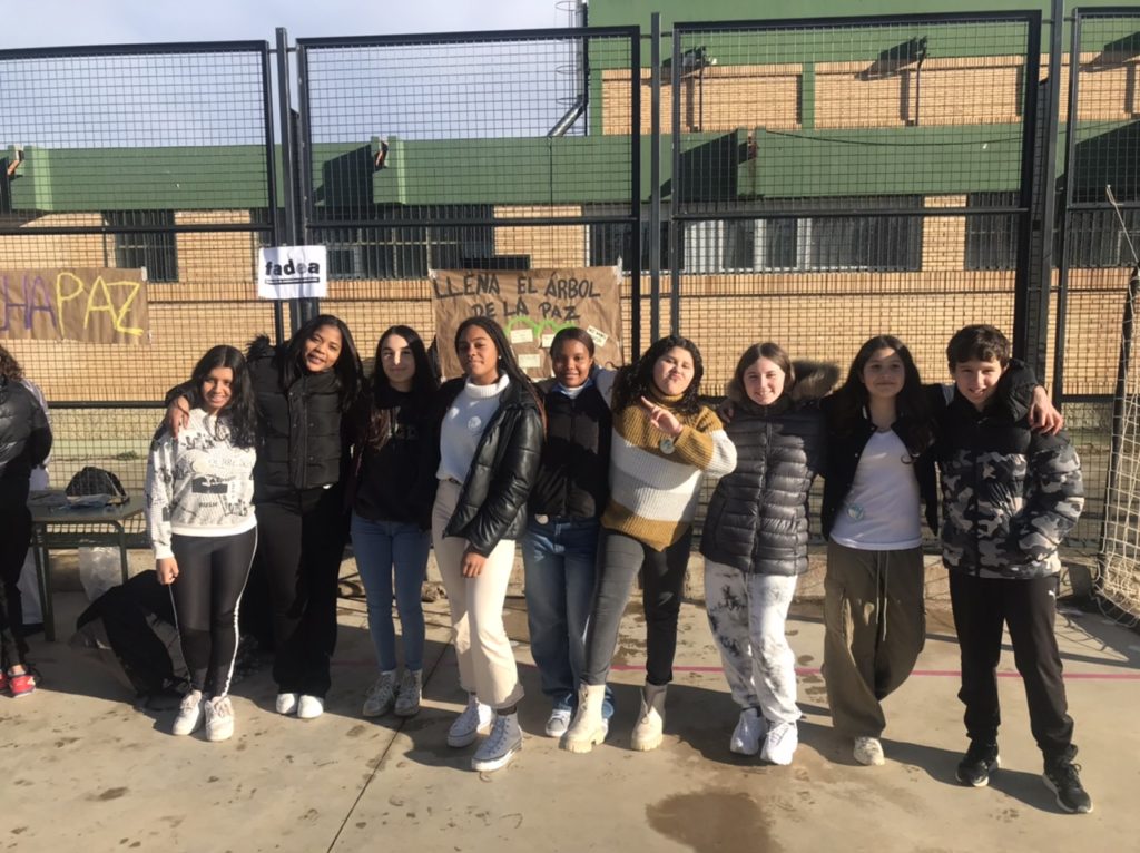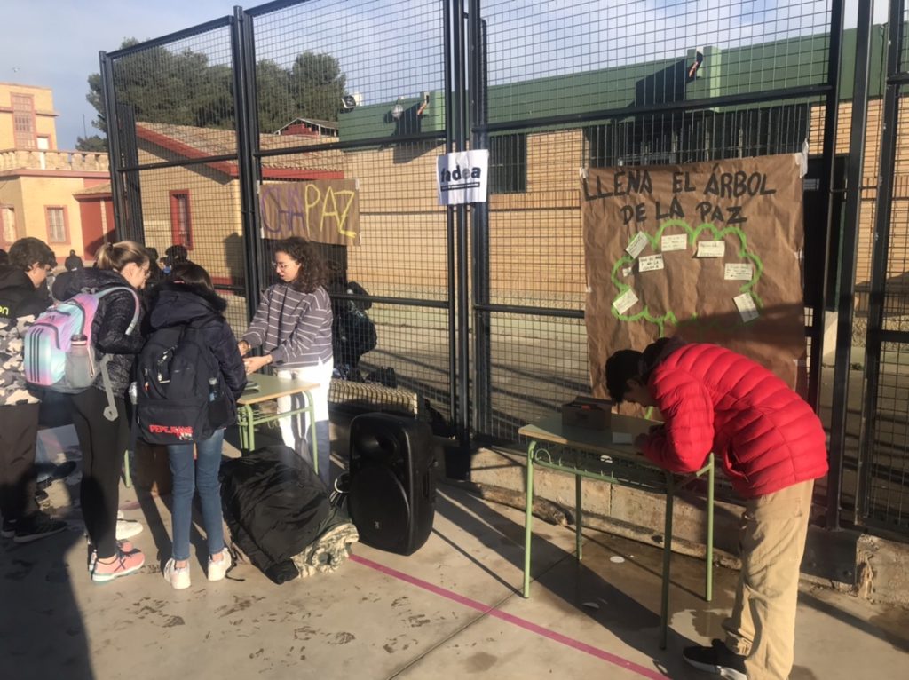 Gracias a la Federación de Asociaciones de Estudiantes (FADEA), se han llevado a cabo 3 talleres en los que han participado todo el alumnado de 1º y 2º ESO. Primero se ha creado un símbolo de la paz humano tras lo cual se ha leído el siguiente manifiesto: