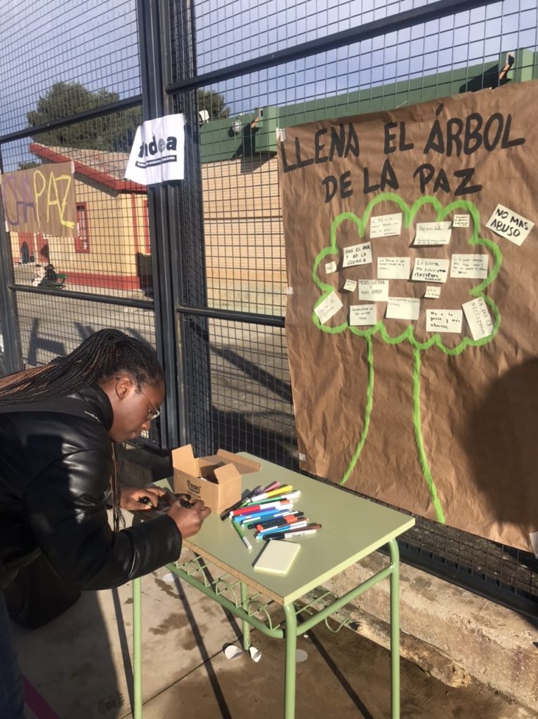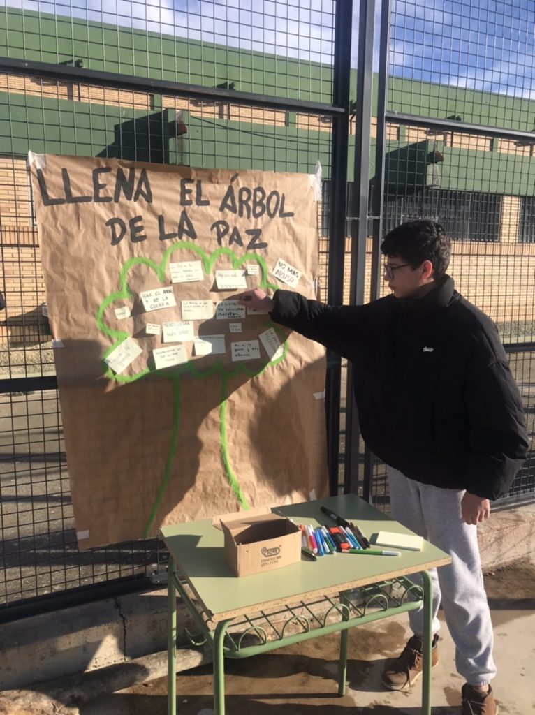 Tras ello, se ha llenado de mensajes un Árbol de la Paz y se han elaborado chapas.