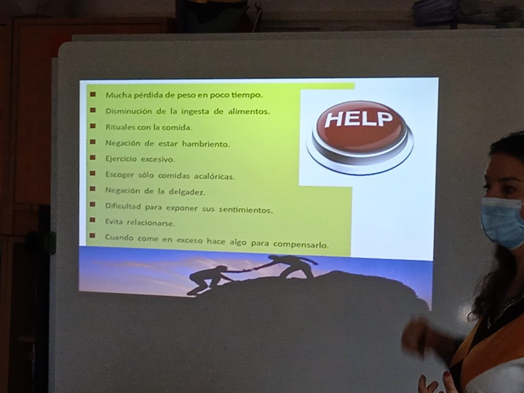 Por su parte, el alumnado de 1º de ESO también ha disfrutado de un taller con Teresa. En esta ocasión sobre nutrición saludable y trastornos de la conducta alimentaria. Han aprendido qué alimentos debemos comer, en qué cantidad y cómo distribuirlos a lo largo del día para que su ingesta nos proporcione energía y todos los nutrientes necesarios. También hemos hablado de comida basura, cómo afecta a nuestra salud y de qué señales de alerta nos pueden indicar que una persona de nuestro entorno está padeciendo anorexia o bulimia para poderla ayudar a través de los médicos y especialistas.