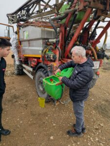El alumnado de 2°GM Producción Agropecuaria han realizado una práctica de campo con Juan Péres de Servicios Agrícolas J.Perez, en la que nos han estado explicando como hacer de forma segura la preparación del caldo para hacer un tratamiento fitosanitario.