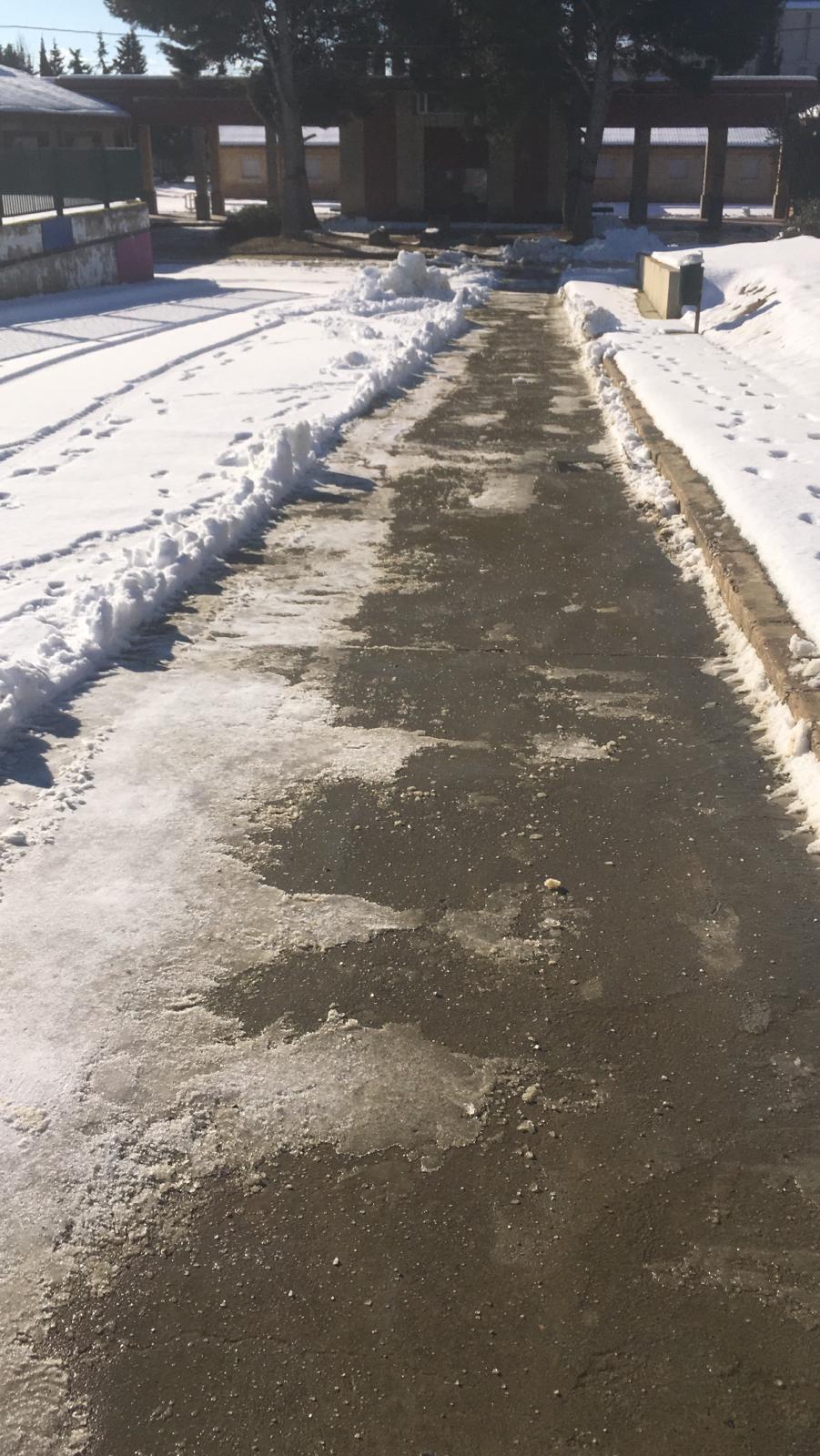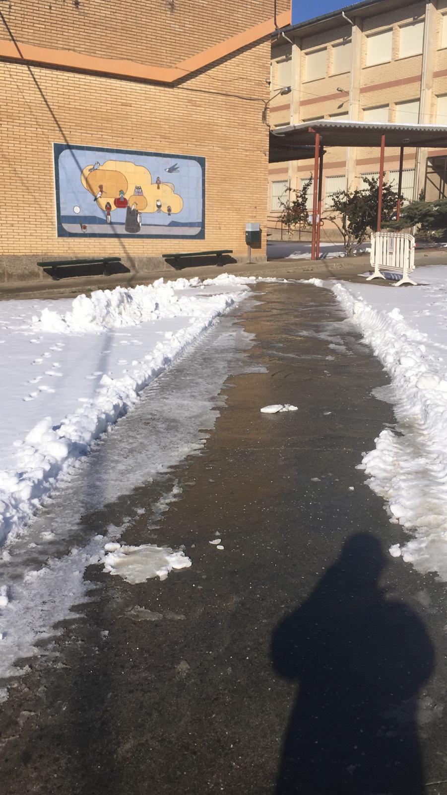 Será un día especial y pedimos colaboración a toda la comunidad educativa para que sólo se hago uso de las zonas despejadas y nunca las zonas donde la nieve y hielo se ha acumulado y que todavía tardará en remitir.